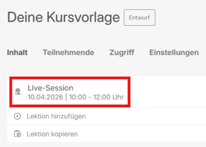 Sobald ein neues Live- oder Hybrid-Training erstellt worden ist öffnen Sie die Lektion.