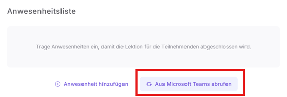 Anschließend klicken Sie im Bereich Anwesenheitsliste auf den Button Aus Microsoft Teams abrufen.
